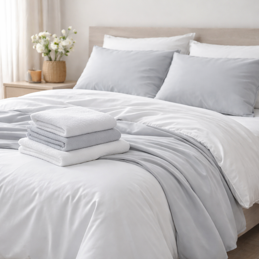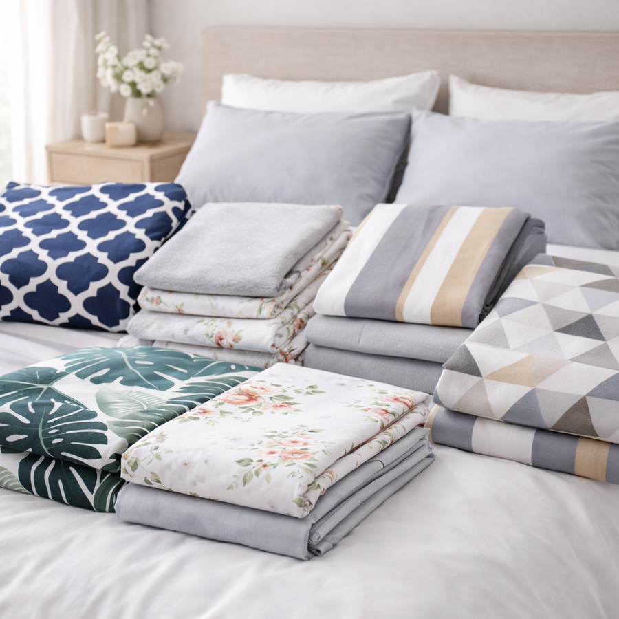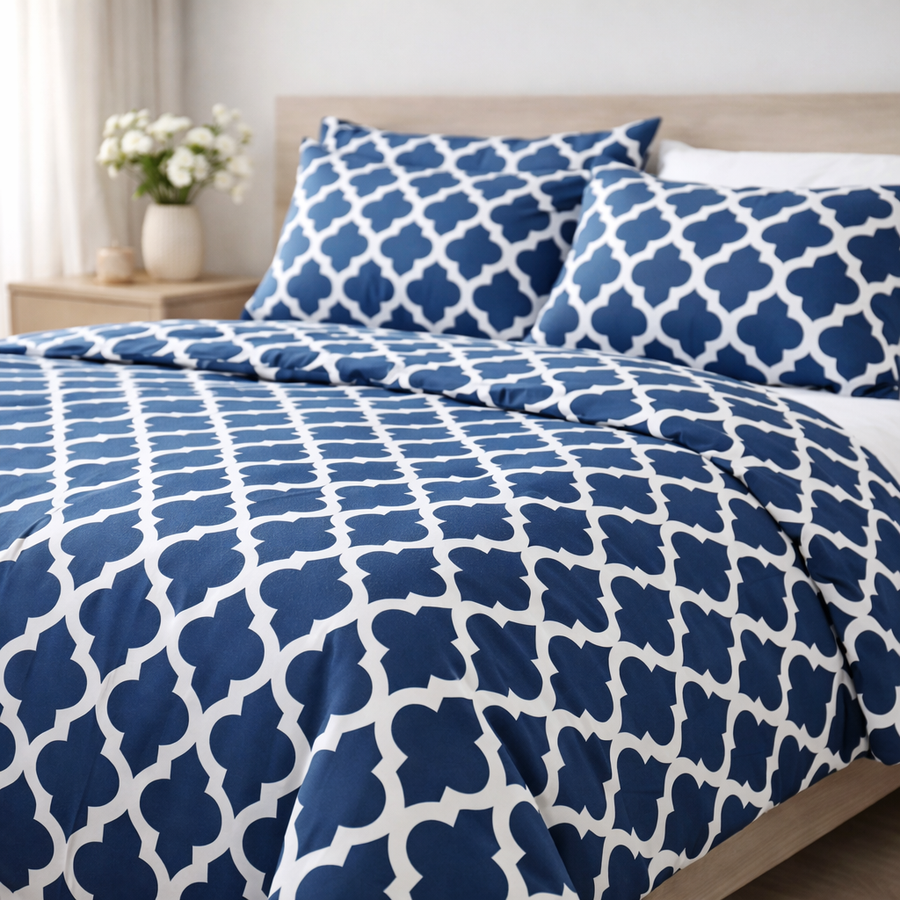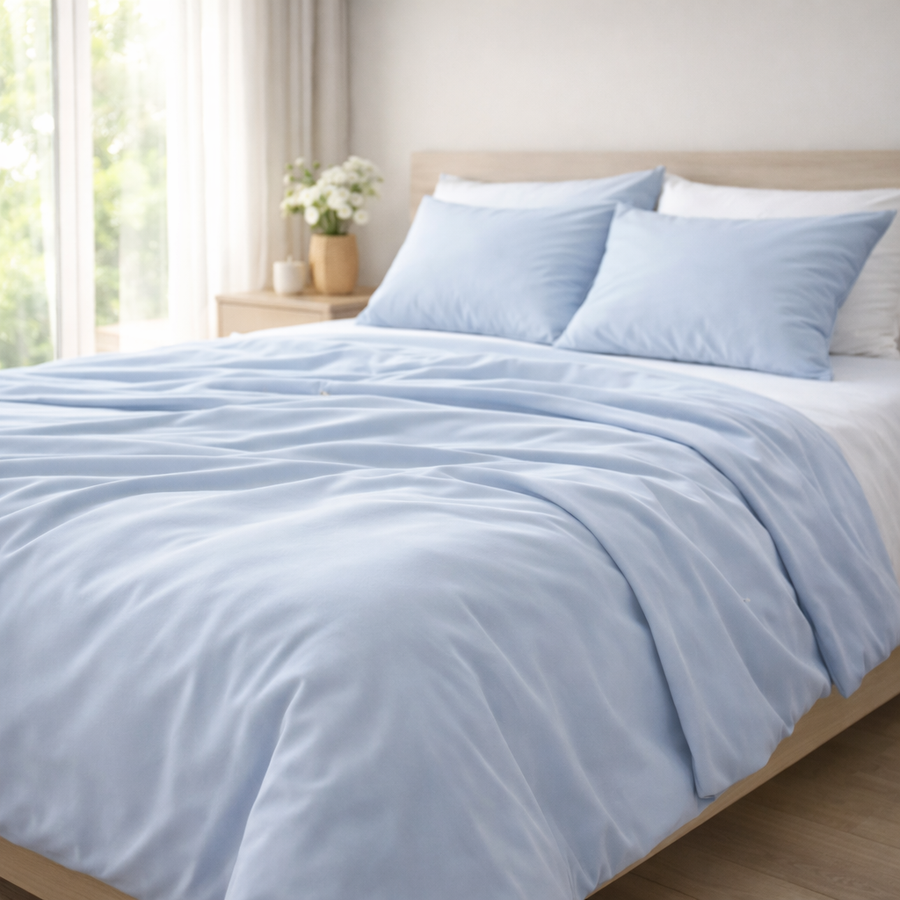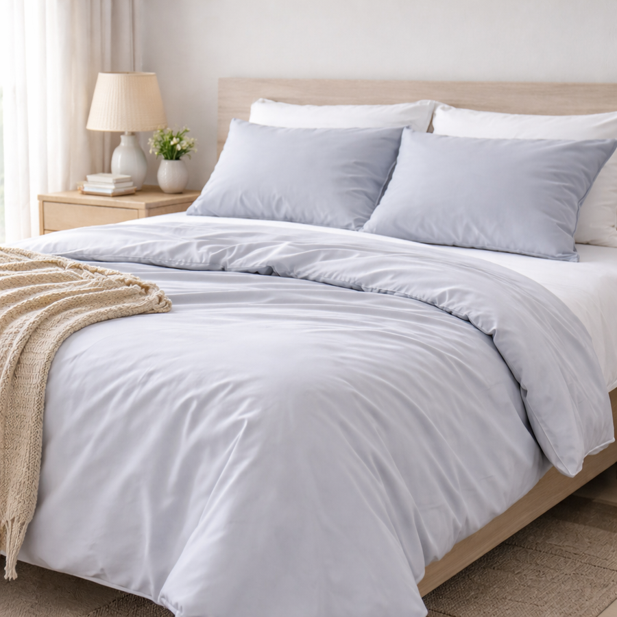 Parure de lit polyester à carreaux rose poudré 220x240 cm