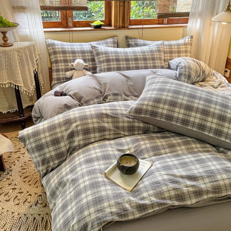 La matière en coton naturel affiche une densité de 200 fils/cm², garantissant une bonne tenue dans le temps tout en conservant une souplesse agréable. Avec un grammage de 120 g/m², le tissu favorise la respirabilité et contribue à un confort régulier, sans sensation d’excès de chaleur. La teinture réactive aide à maintenir la netteté du motif à carreaux et la stabilité des couleurs après des lavages répétés.