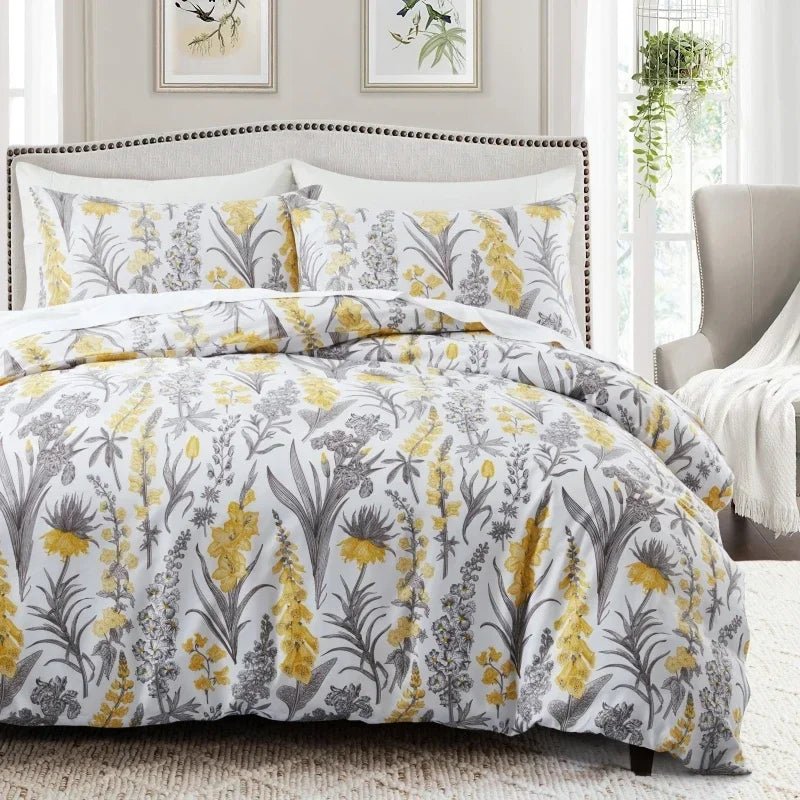 Parure de lit fleurs jaunes et grises 200x200 cm – 3 pièces